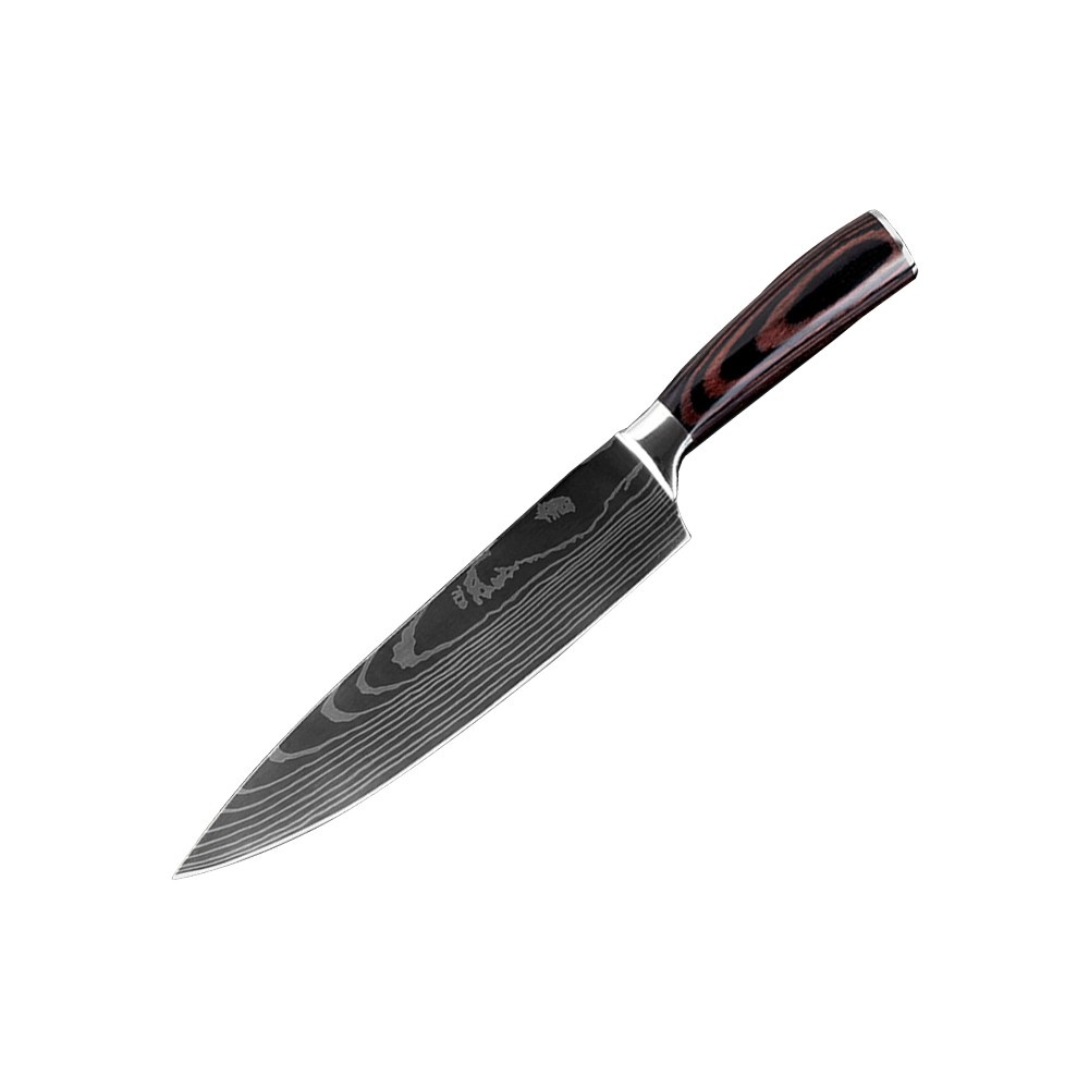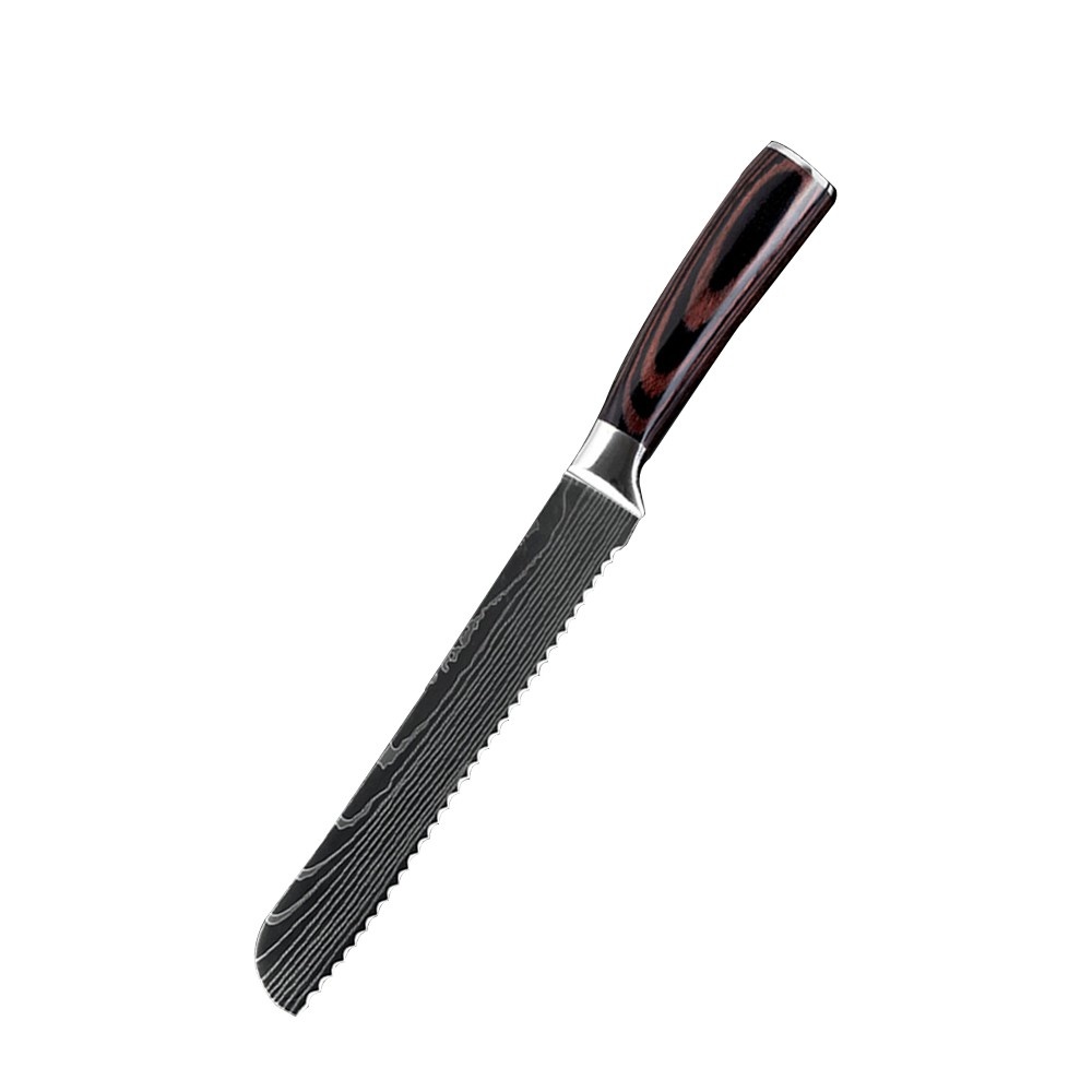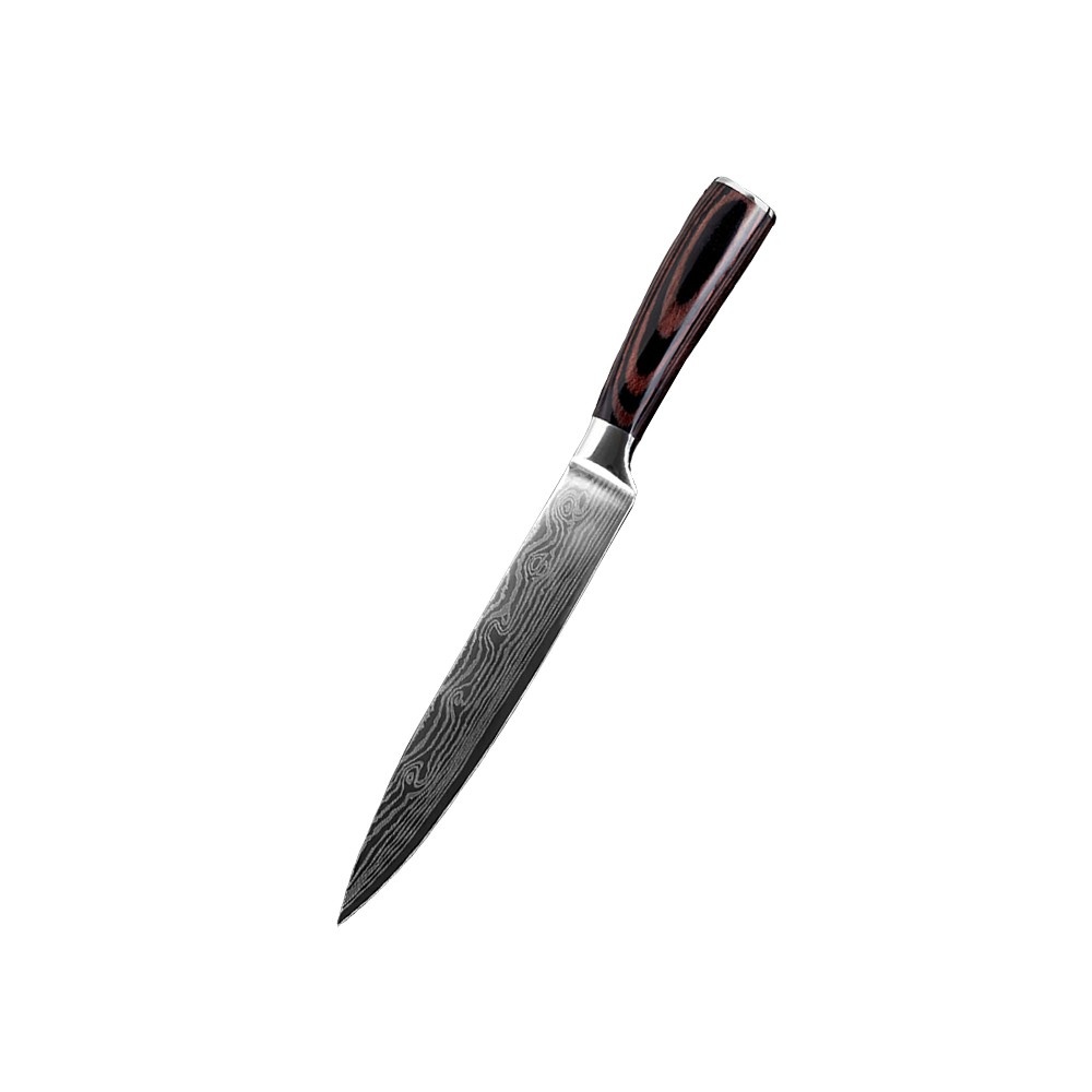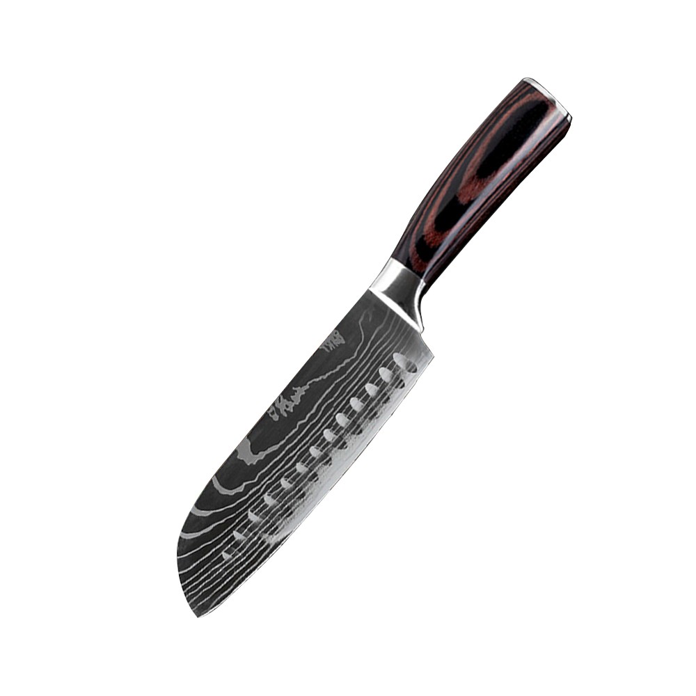 • SET DI COLTELLI MULTIUSO: set di coltelli da 8 pezzi comprendente coltello da chef, coltello da trinciante, coltello da pane, coltello giapponese grande, coltello da verdura, coltello per disossare, coltello giapponese piccolo e spelucchino. Che si tratti di tagliare carne, affettare verdure, disossare, sbucciare o affettare il pane, possiamo soddisfare le vostre esigenze.