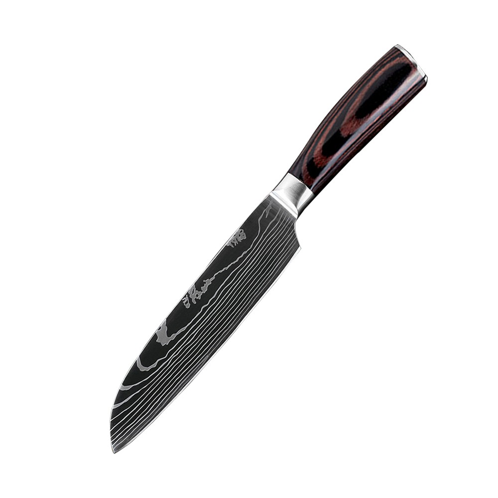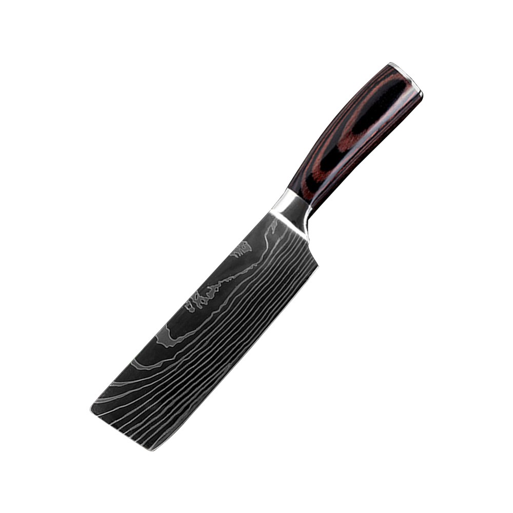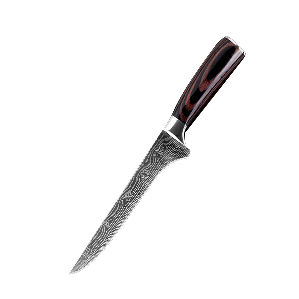 • Coltello pratico: il coltello da chef è un coltello completo che può essere utilizzato per tagliare carne, pesce e verdure; la mannaia viene utilizzata per tagliare, tagliare, stampare e intagliare; il coltello giapponese può essere utilizzato per tagliare carne, verdure e frutta; un coltello per ossa viene utilizzato per separare ossa e carne, mentre uno spelucchino facilita la sbucciatura di frutta e verdura rotonde.